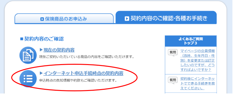 インターネットでお申込みされたお客さまは、いつでもマイページ内でご確認いただけます。